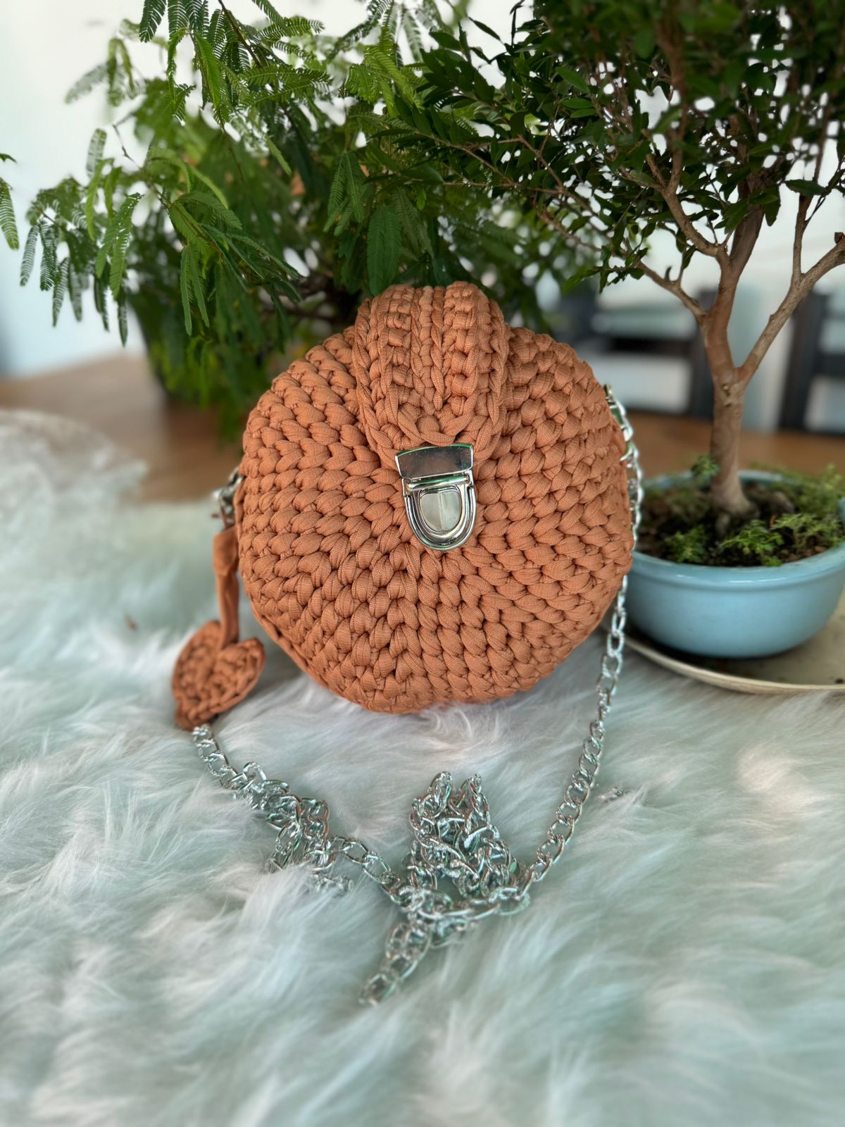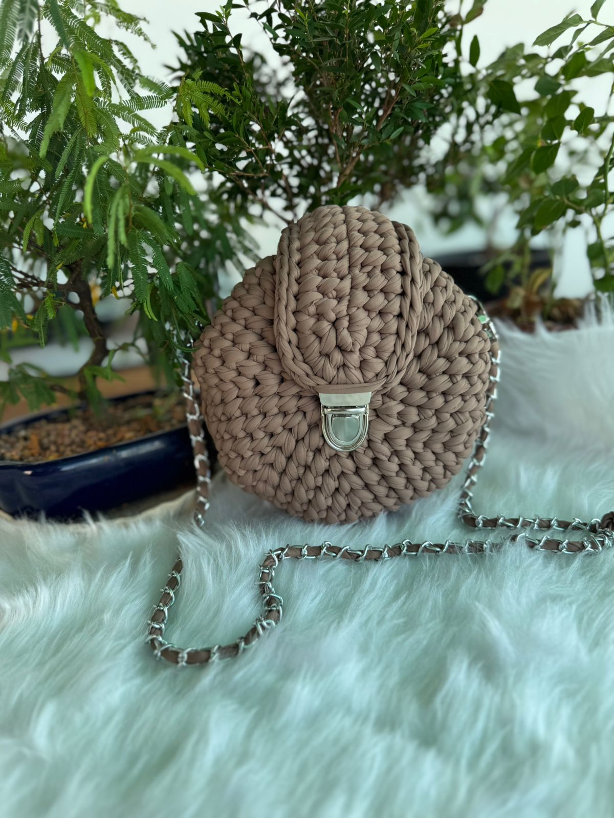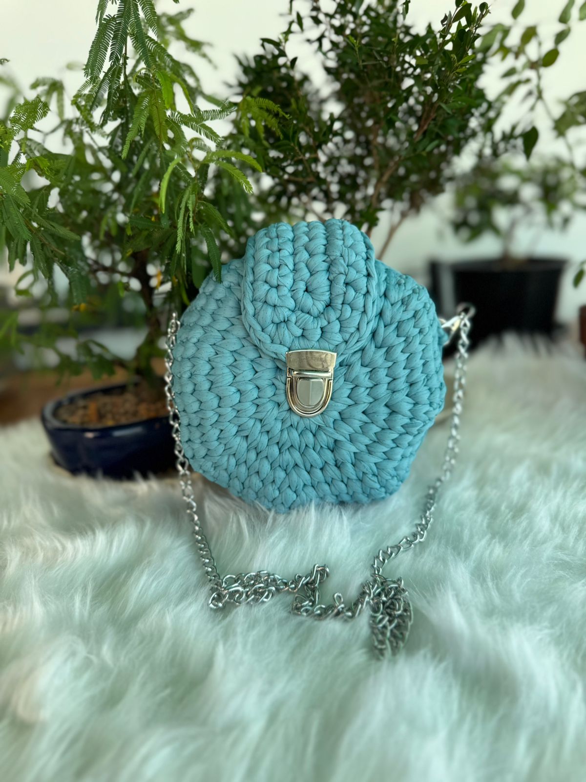 A Bolsa Verônica no tamanho M é feita à mão em fio de malha, trazendo autenticidade e exclusividade em cada detalhe. Seu formato redondo é diferenciado e elegante, enquanto o fecho metálico garante segurança e sofisticação.